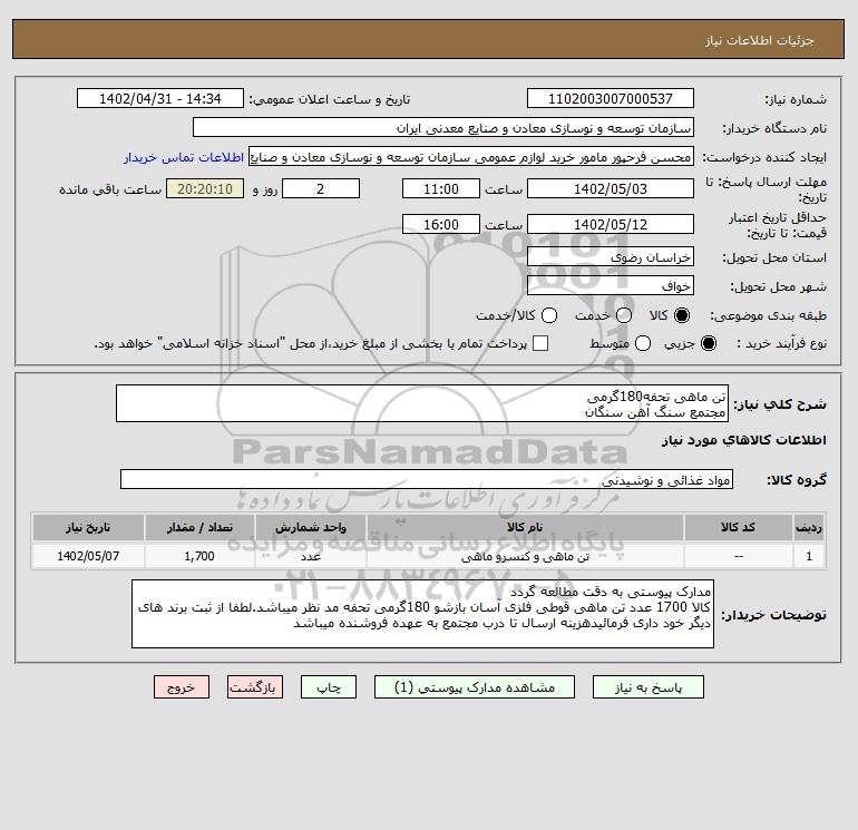 شرح کلی نیاز: تن ماهی تحفه180گرمی مجتمع سنگ آهن سنگان