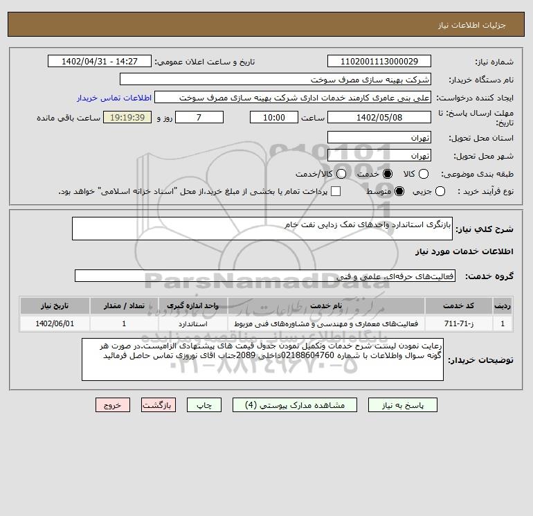 شرح کلی نیاز: بازنگری استاندارد واحدهای نمک زدایی نفت خام
