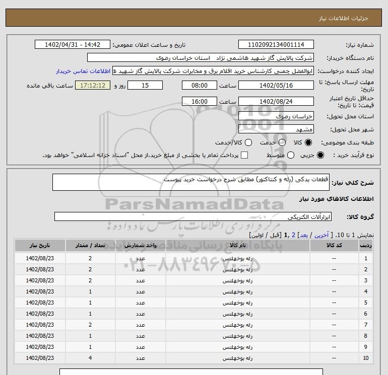 نام دستگاه خریدار:شرکت پالایش گاز شهید هاشمی نژاد استان خراسان رضوی