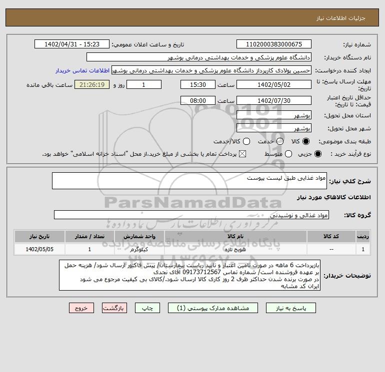 شرح کلی نیاز: مواد غذایی طبق لیست پیوست