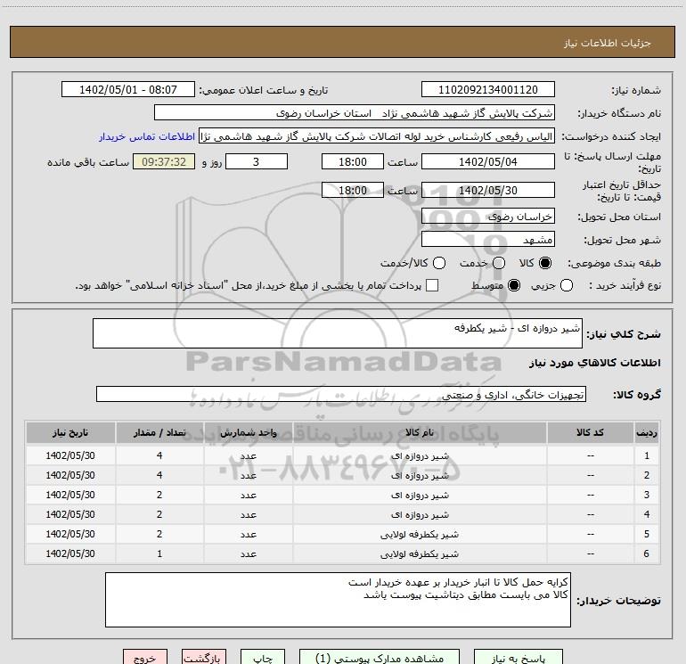 1 -- شیر دروازه ای عدد 4 1402/05/30