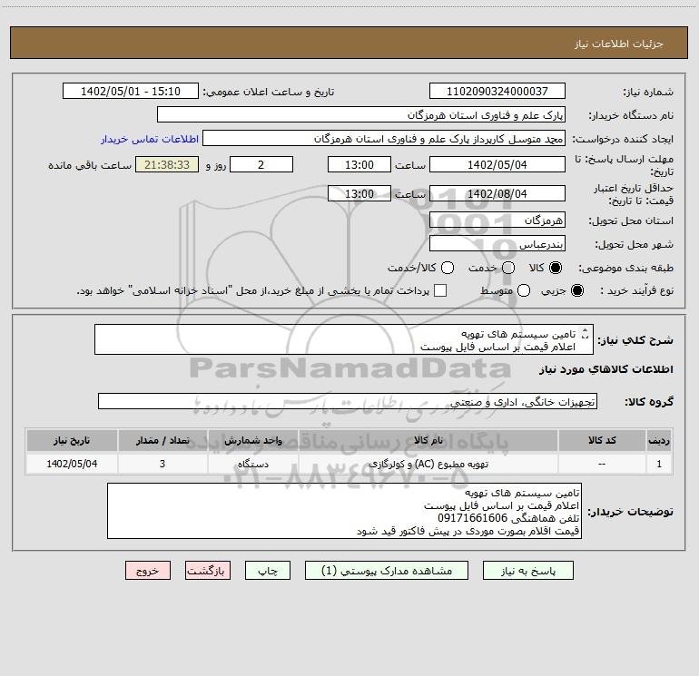 نام دستگاه خریدار:پارک علم و فناوری استان هرمزگان