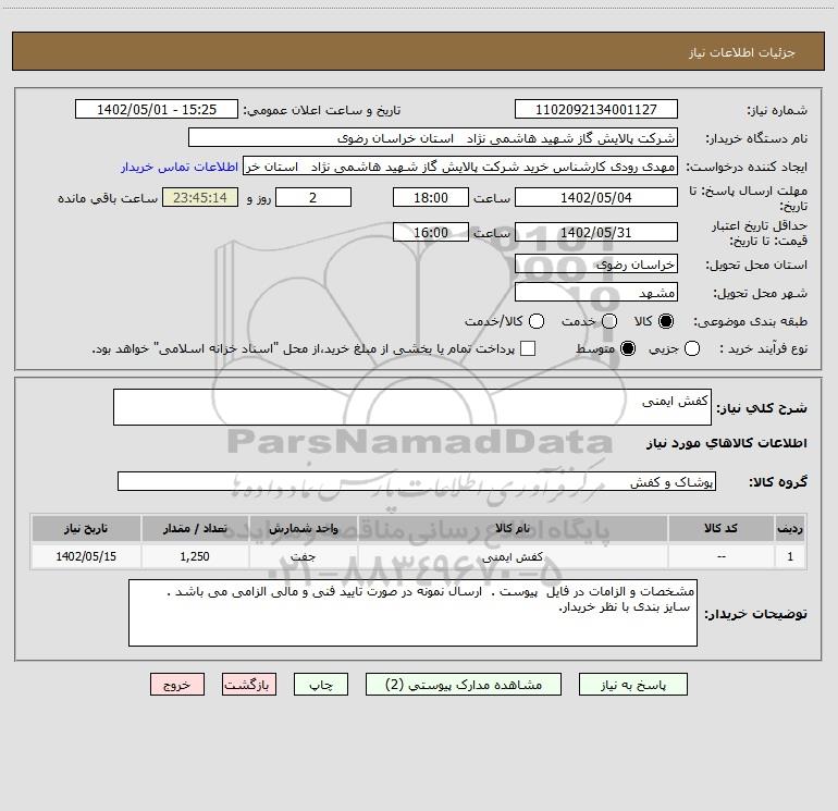 نام دستگاه خریدار:شرکت پالایش گاز شهید هاشمی نژاد استان خراسان رضوی