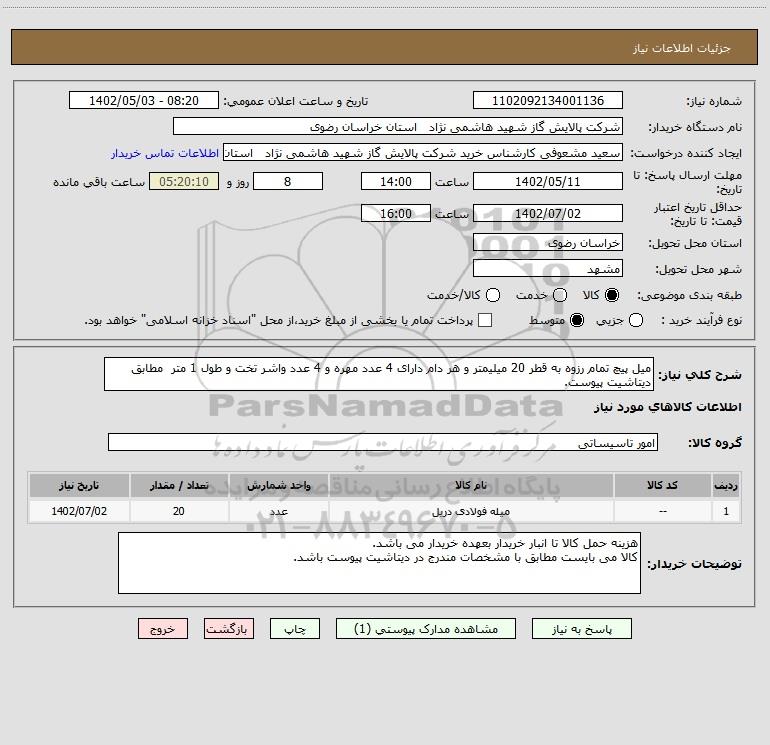 نام دستگاه خریدار:شرکت پالایش گاز شهید هاشمی نژاد استان خراسان رضوی