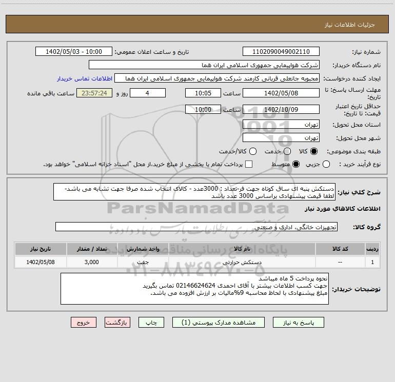 نام دستگاه خریدار:شرکت هواپیمایی جمهوری اسلامی ایران هما