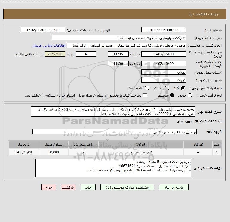 نام دستگاه خریدار:شرکت هواپیمایی جمهوری اسلامی ایران هما