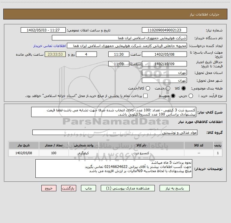 استعلام کنسرو ذرت 3 کیلویی - تعداد :100 عدد -کالای انتخاب شده صرفا جهت تشابه می باشد-لطفا قیمت پیشنهادی براساس 100 عدد کنسرو3کیلویی باشد., استعلام کنسرو ذرت 3 کیلویی - تعداد :100 عدد -کالای انتخاب شده صرفا جهت تشابه می باشد-لطفا قیمت پیشنهادی براساس 100 عدد کنسرو3کیلویی باشد.