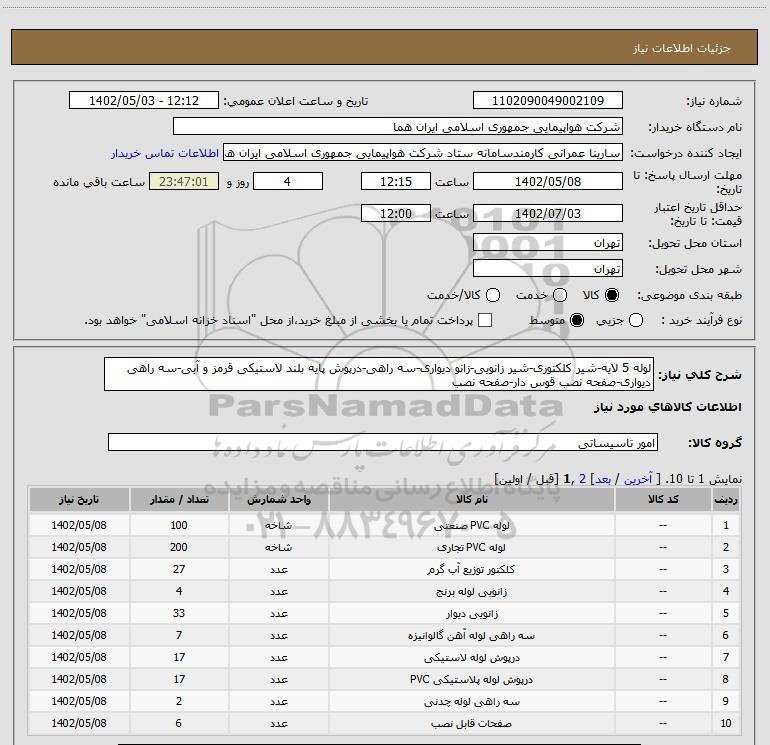 شرح کلی نیاز: لوله 5 لایه-شیر کلکتوری-شیر زانویی-زانو دیواری-سه راهی-درپوش پایه بلند لاستیکی قرمز و آبی-سه راهی دیواری-صفحه نصب قوس دار-صفحه نصب