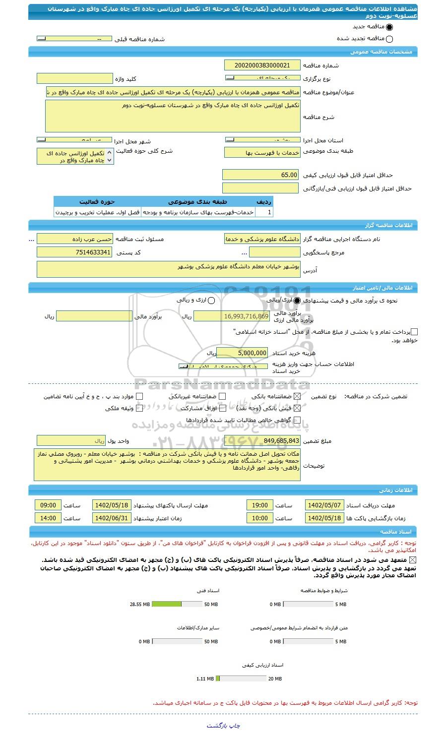 | مبلغ تضمین | 849,685,843 | واحد پول | ریال |