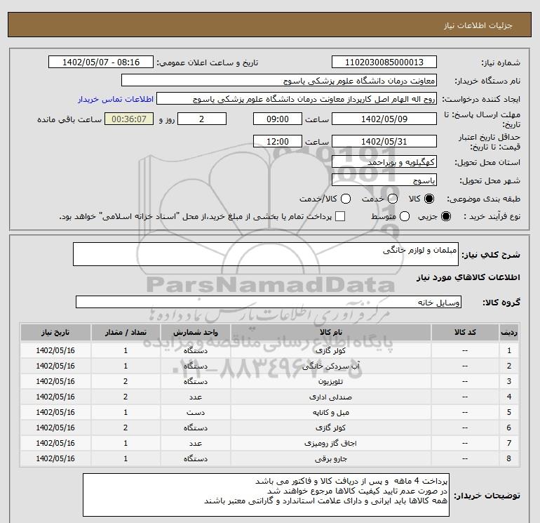 شرح کلی نیاز: مبلمان و لوازم خانگی