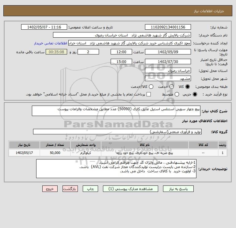نام دستگاه خریدار:شرکت پالایش گاز شهید هاشمی نژاد استان خراسان رضوی