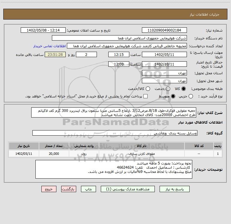 نام دستگاه خریدار:شرکت هواپیمایی جمهوری اسلامی ایران هما