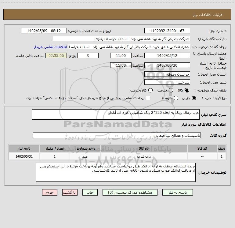 نام دستگاه خریدار:شرکت پالایش گاز شهید هاشمی نژاد استان خراسان رضوی