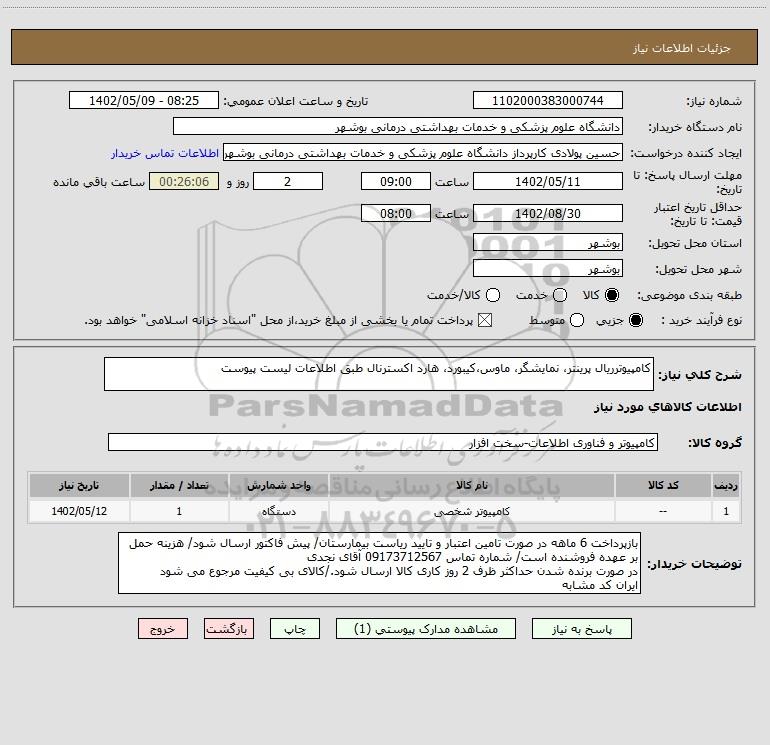 نام دستگاه خریدار:دانشگاه علوم پزشکی و خدمات بهداشتی درمانی بوشهر