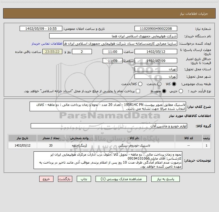 نام دستگاه خریدار:شرکت هواپیمایی جمهوری اسلامی ایران هما