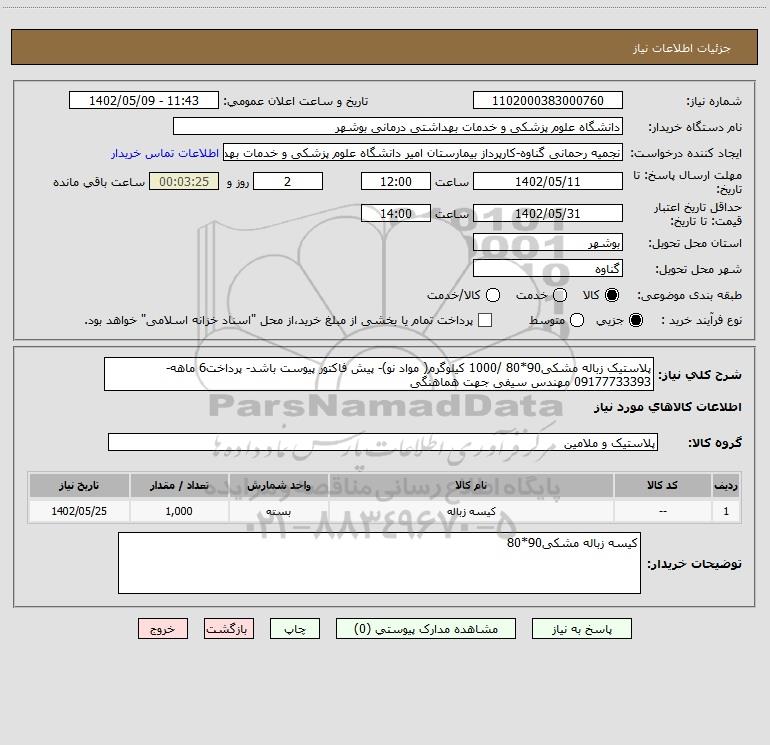 نام دستگاه خریدار:دانشگاه علوم پزشکی و خدمات بهداشتی درمانی بوشهر