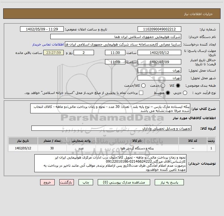 نام دستگاه خریدار:شرکت هواپیمایی جمهوری اسلامی ایران هما