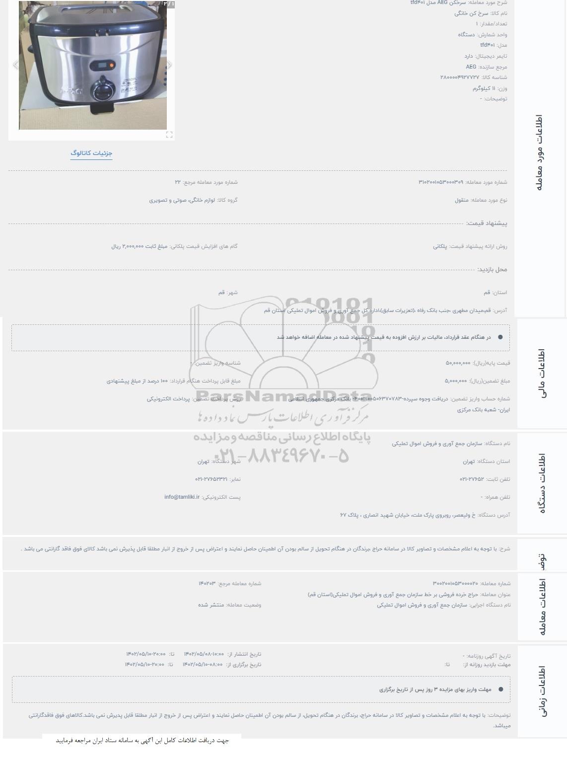 عنوان معامله : حراج خرده فروشی بر خط سازمان جمع اوری و فروش اموال تملیکی (استان قم)