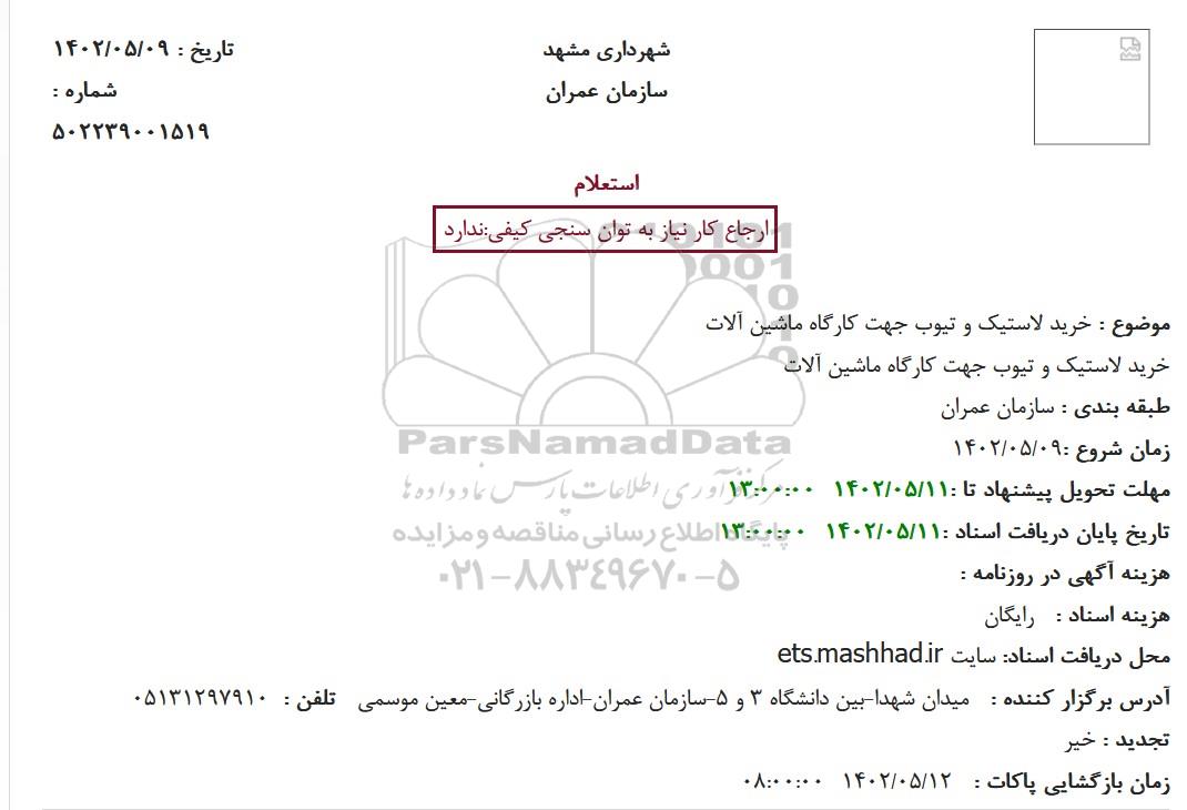 ارجاع کار نیاز به توان سنجی کیفی:ندارد