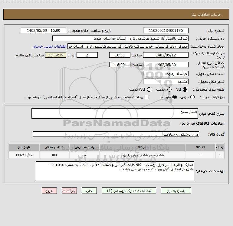 نام دستگاه خریدار:شرکت پالایش گاز شهید هاشمی نژاد استان خراسان رضوی