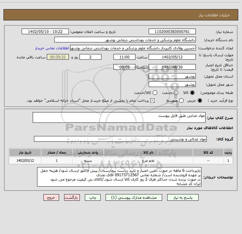 شرح کلی نیاز: مواد غذایی طبق فایل پیوست