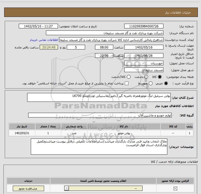 نام دستگاه خریدار:شرکت بهره برداری نفت و گاز مسجد سلیمان