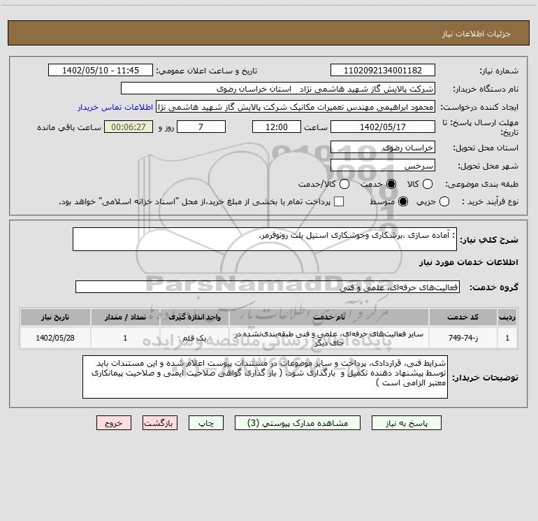 شرح کلی نیاز: : آماده سازی ،برشکاری وجوشکاری استیل بلت روتوفرمر.