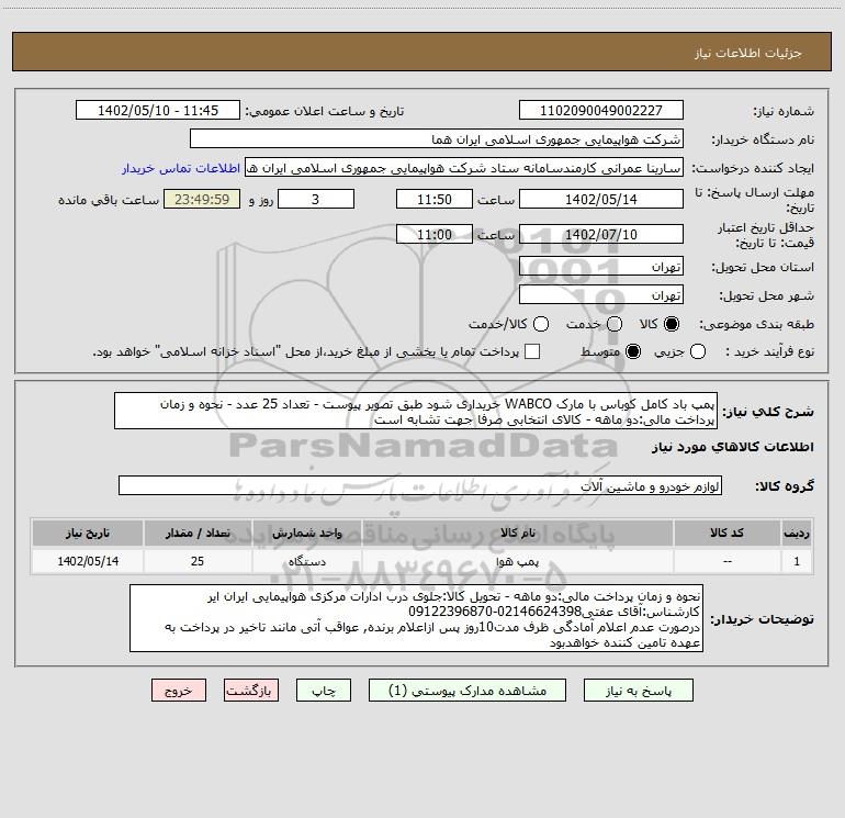 نام دستگاه خریدار:شرکت هواپیمایی جمهوری اسلامی ایران هما