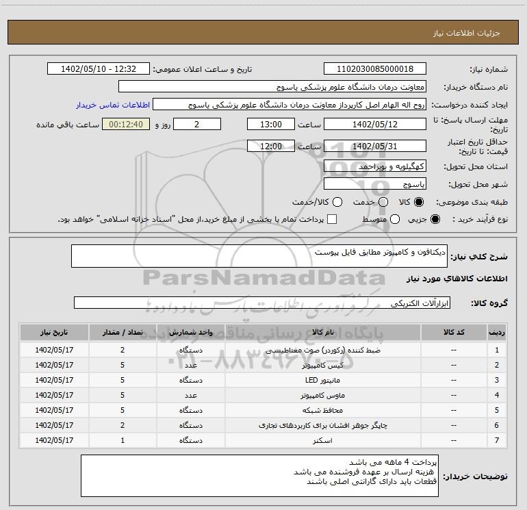 نام دستگاه خریدار:معاونت درمان دانشگاه علوم پزشکی یاسوج