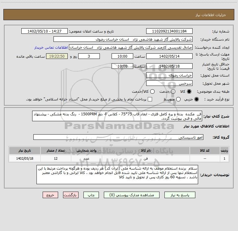 نام دستگاه خریدار:شرکت پالایش گاز شهید هاشمی نژاد استان خراسان رضوی