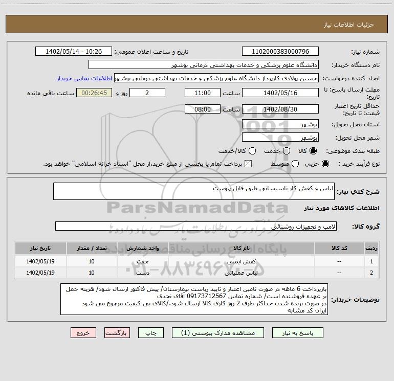 شرح کلی نیاز: لباس و کفش کار تاسیساتی طبق فایل پیوست