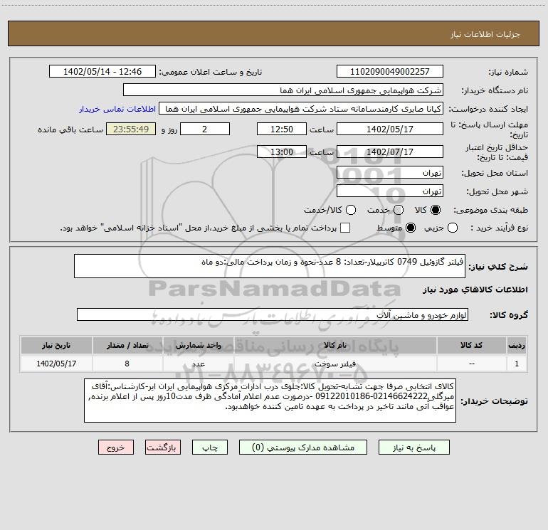 نام دستگاه خریدار:شرکت هواپیمایی جمهوری اسلامی ایران هما