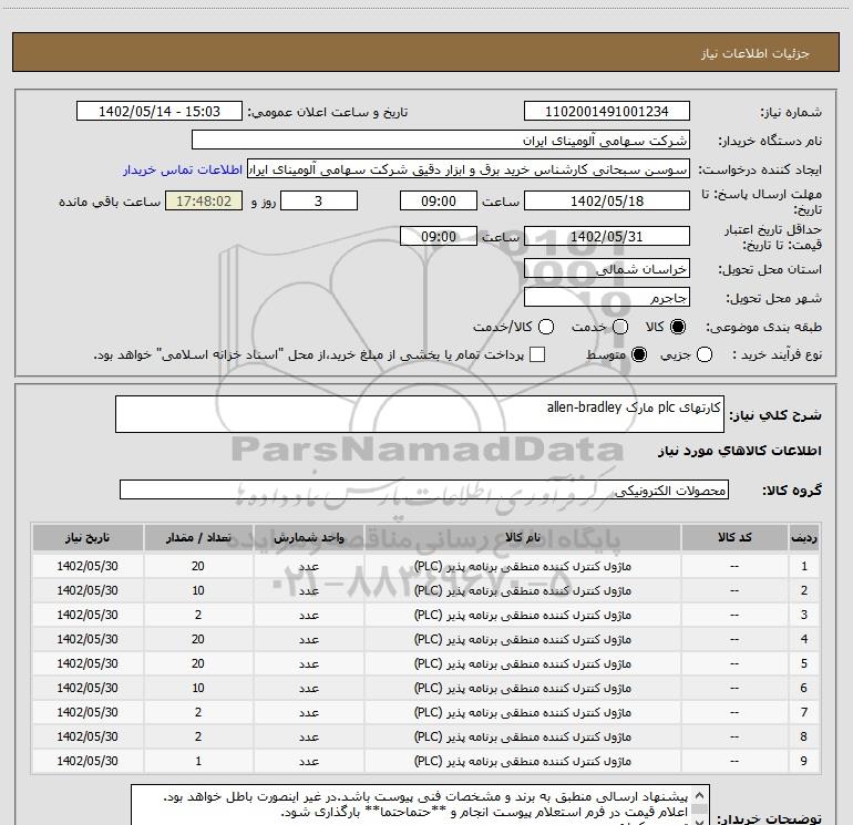 شرح کلی نیاز: کارتهای plc مارک allen-bradley