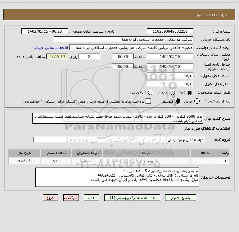 استعلام پودر S500 کیلویی - 500 کیلو در ماه، سامانه ستاد, استعلام پودر S500 کیلویی - 500 کیلو در ماه، سامانه ستاد