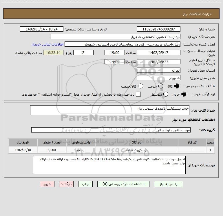 شرح کلی نیاز: خرید بیسکوئیت 3عددی سبوس دار