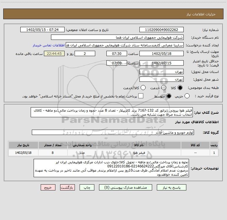 نام دستگاه خریدار:شرکت هواپیمایی جمهوری اسلامی ایران هما