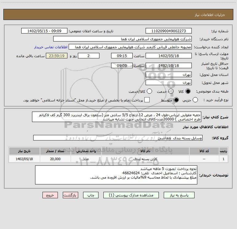 نام دستگاه خریدار:شرکت هواپیمایی جمهوری اسلامی ایران هما