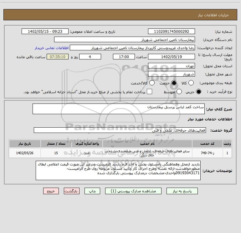 نام دستگاه خریدار:بیمارستان تامین اجتماعی شهریار