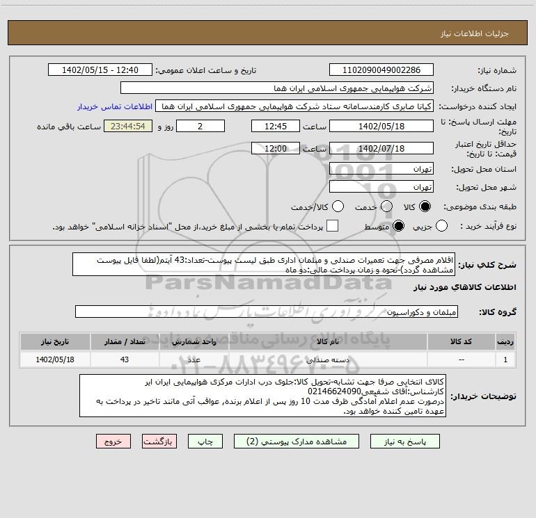 نام دستگاه خریدار:شرکت هواپیمایی جمهوری اسلامی ایران هما