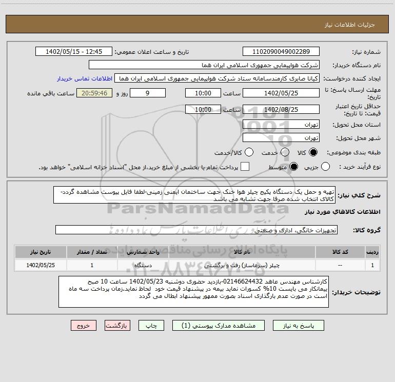 نام دستگاه خریدار:شرکت هواپیمایی جمهوری اسلامی ایران هما
