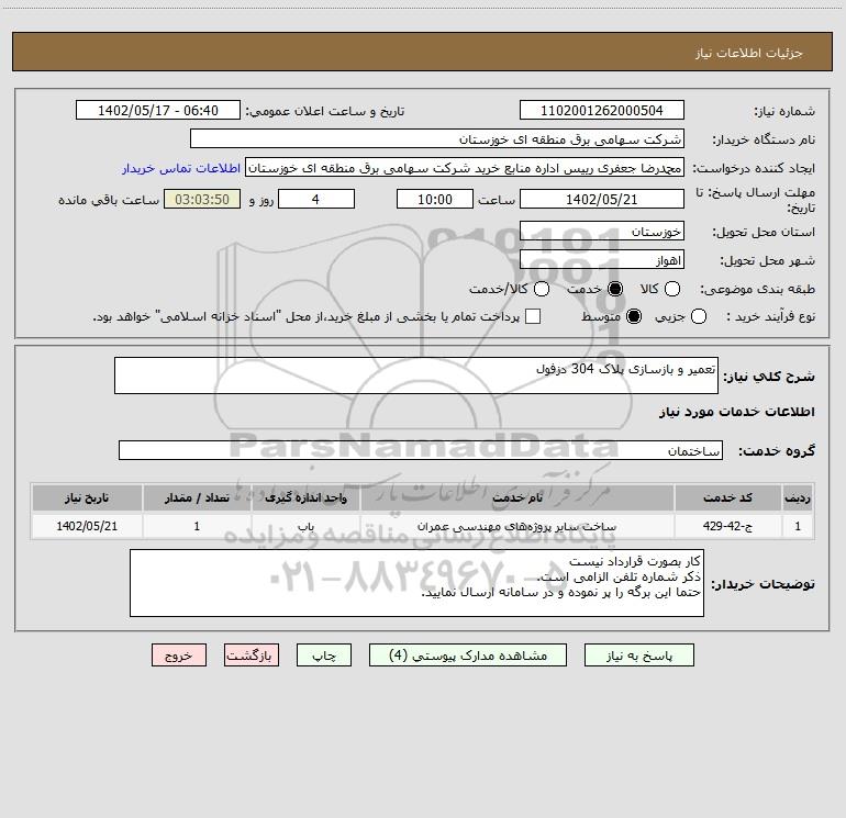 استعلام تعمیر و بازسازی پلاک 304 دزفول, استعلام تعمیر و بازسازی پلاک 304 دزفول