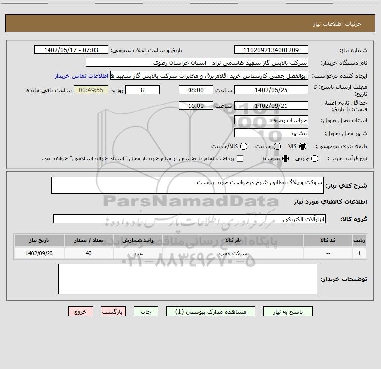 شرح کلی نیاز: سوکت و پلاگ مطابق شرح درخواست خرید پیوست
