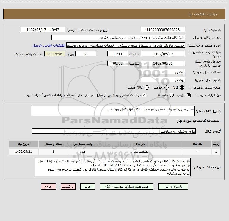 شرح کلی نیاز: مش بینی، اسپیلنت بینی، مروسل، VT طبق فایل پیوست