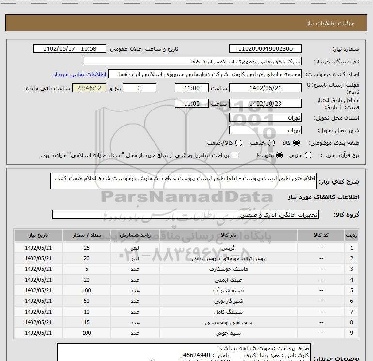 نام دستگاه خریدار:شرکت هواپیمایی جمهوری اسلامی ایران هما