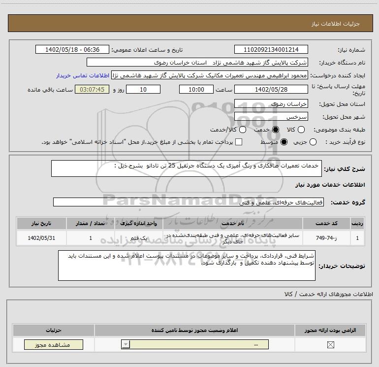 نام دستگاه خریدار:شرکت پالایش گاز شهید هاشمی نژاد استان خراسان رضوی