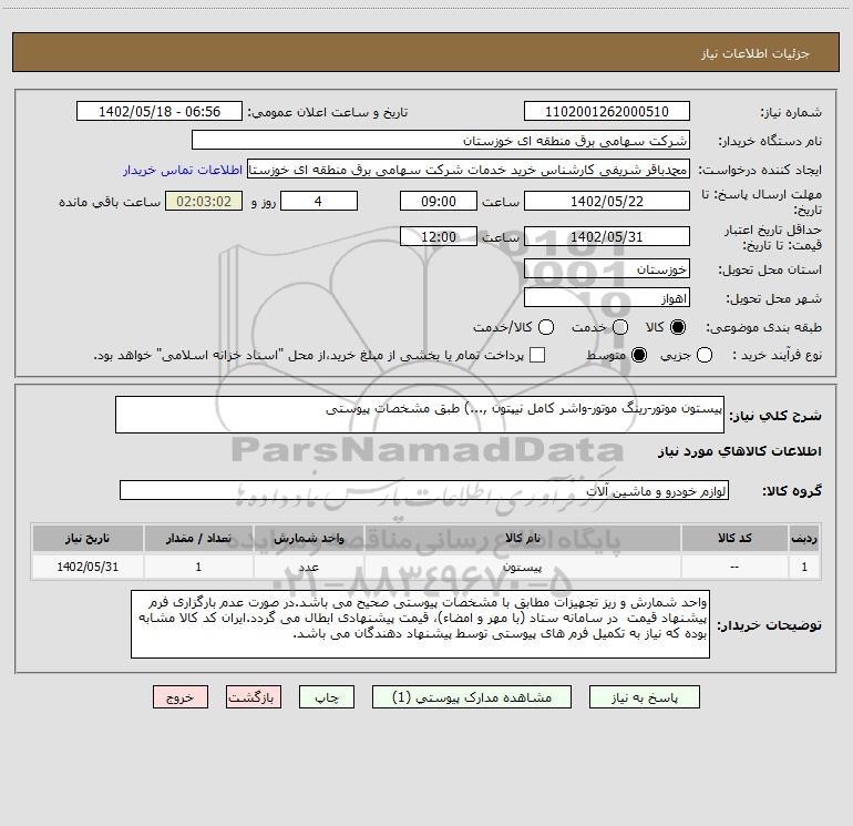 نام دستگاه خریدار:شرکت سهامی برق منطقه ای خوزستان