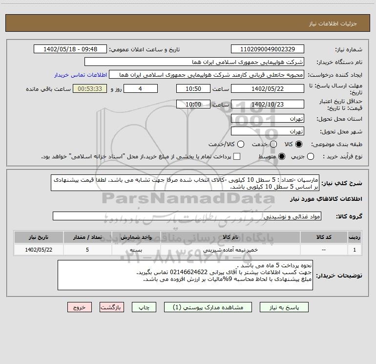 نام دستگاه خریدار:شرکت هواپیمایی جمهوری اسلامی ایران هما