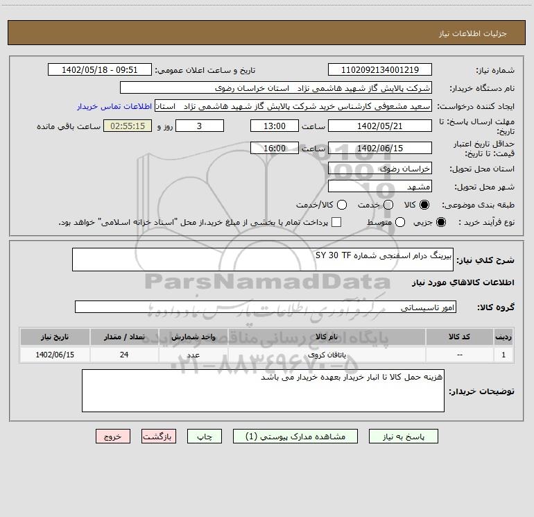 شرح کلی نیاز: بیرینگ درام اسفنجی شماره SY 30 TF