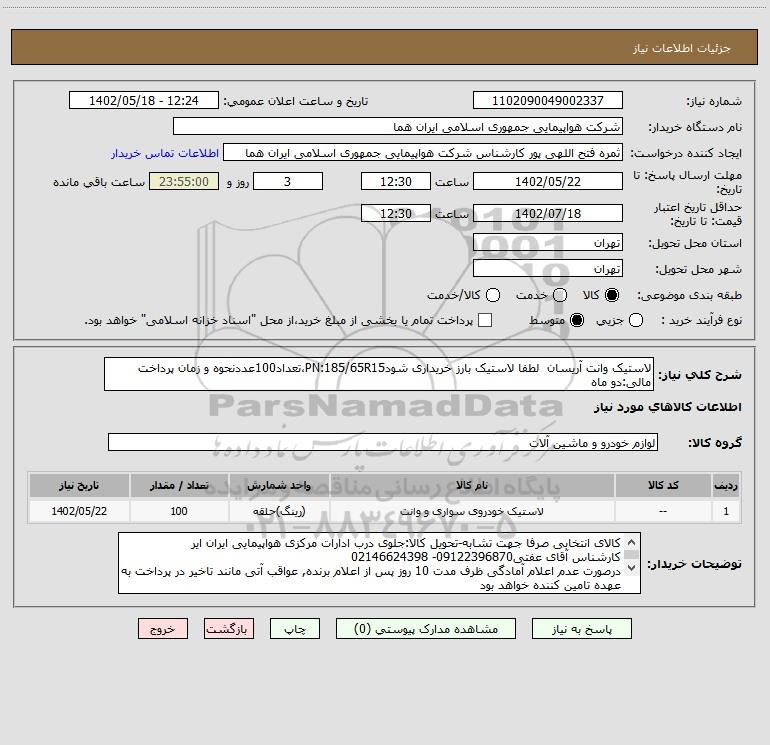 نام دستگاه خریدار:شرکت هواپیمایی جمهوری اسلامی ایران هما