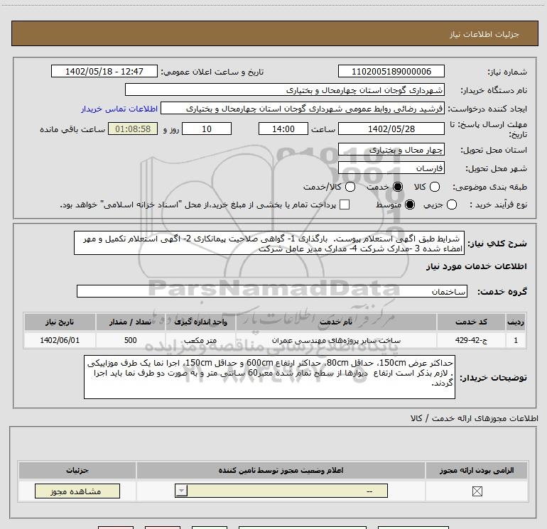 نام دستگاه خریدار:شهرداری گوجان استان چهارمحال و بختیاری